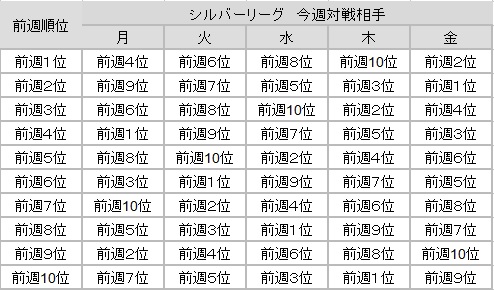 ゴールドリーグは総当たり戦です。何曜日は何位と何位が対戦する。という明確なルールは無いようです。
